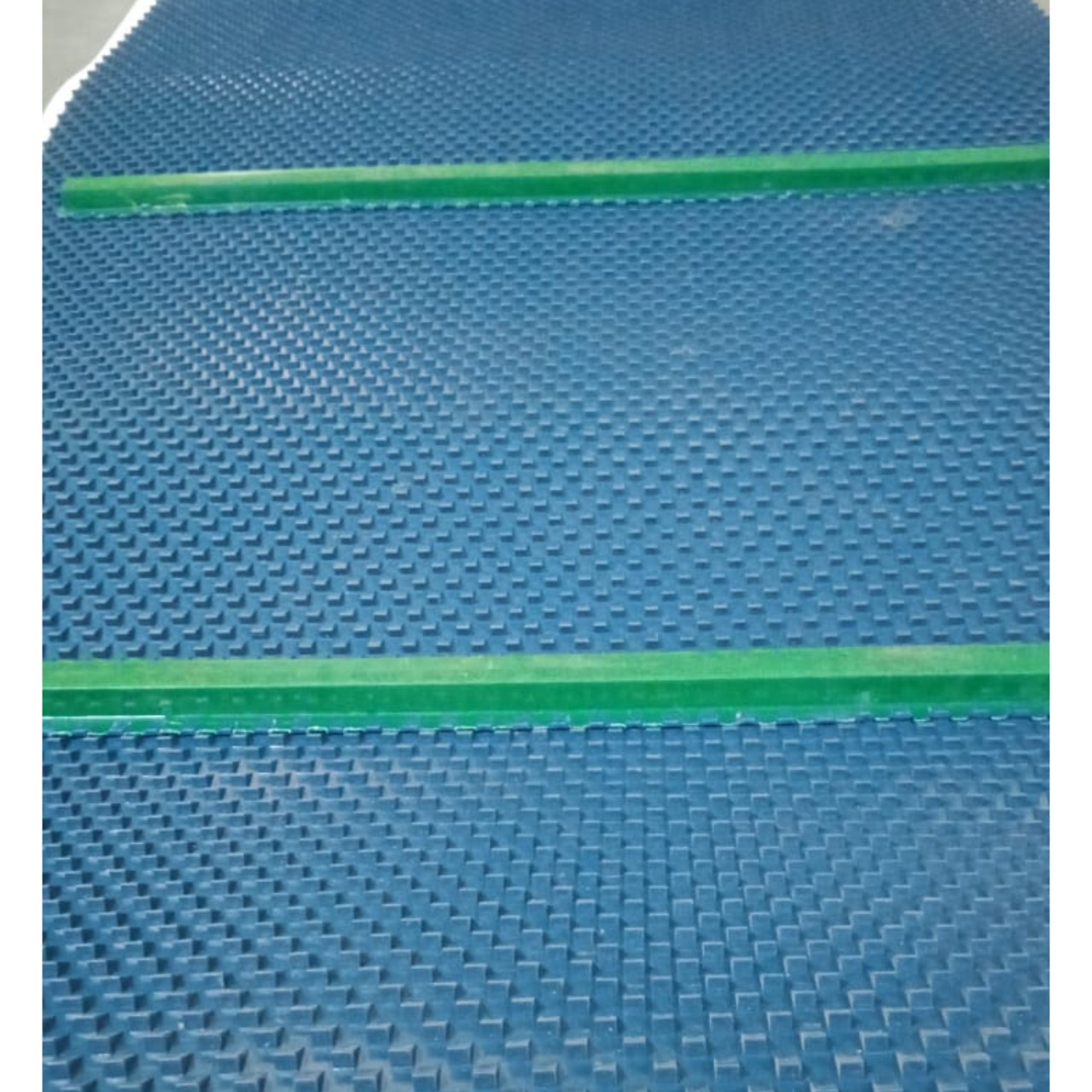 Customised moulded cleats on PVC Staggered sawtooth conveyor belts with hot finger joint or Flexco fastener joints. We are the largest supplier of PVC conveyor belts in India with variety of models and customised options suitable for all industry applications. Imported Mira belt Korean brand of PVC conveyor belts supplying all around India and in major places such as Chennai, coimbatore, Bangalore, hosur, Madurai, Trichy, Kerala, Orissa, Mangalore, Sricity, Tada, Andhra Pradesh, Hyderabad, Mysore, Pune etc.